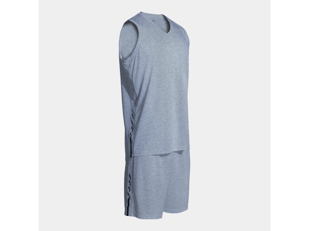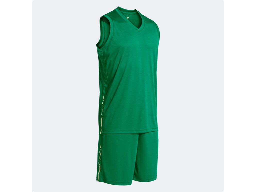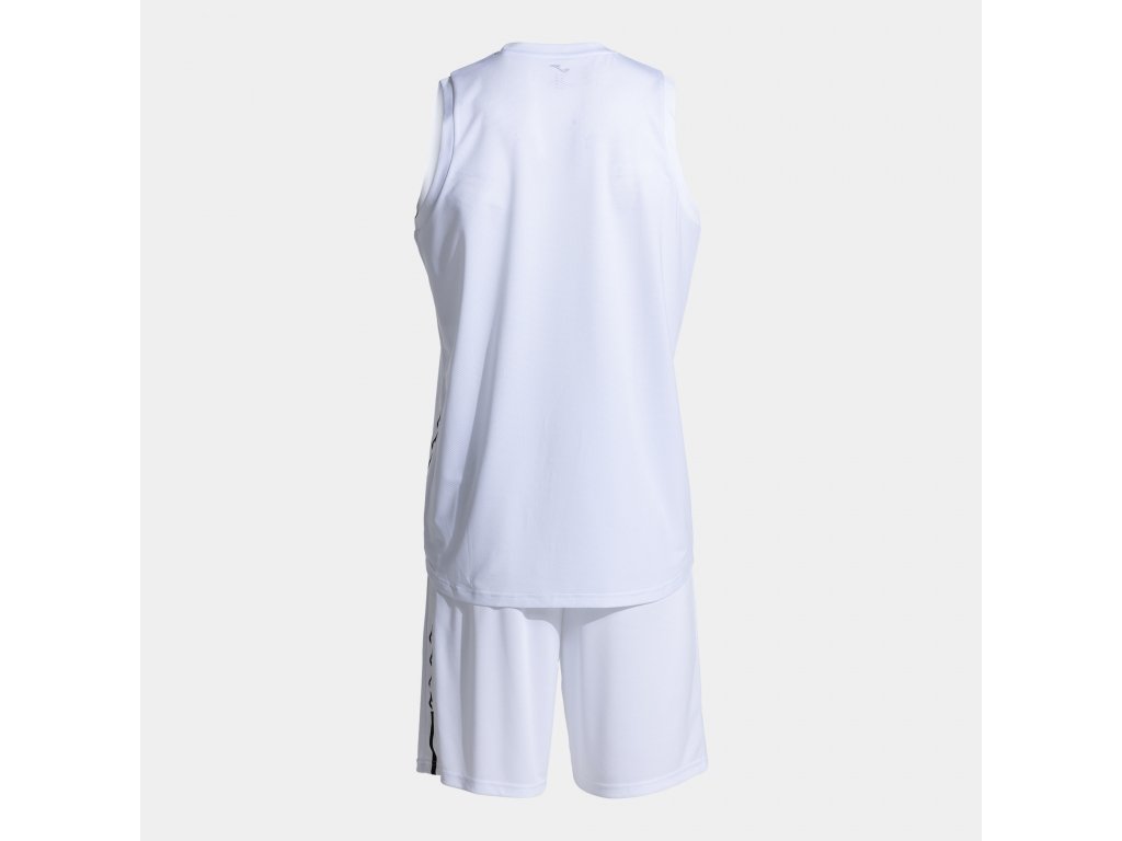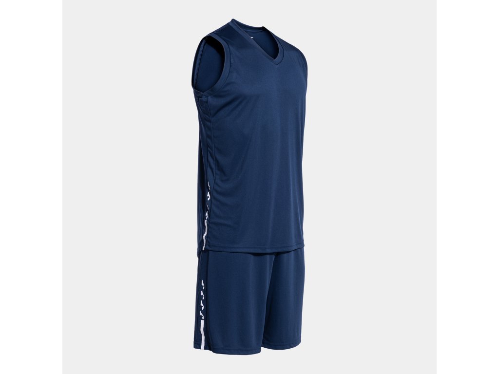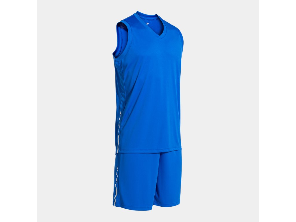 Basketbalový dres a trenky, set JOMA Olimpiada. Model skládající se z trička a kraťasů vyrobených z lehké a prodyšné látky. Tato sportovní souprava je ideální pro dosažení maximálního výkonu jak v tréninku, tak na zápasech. Tričko je bez rukávů a má výstřih do V ze základní látky s vnitřní krycí páskou, aby se zabránilo možnému tření. Je vyrobena technologií Micro-Mesh System na zádech, která usnadňuje odvod potu a optimalizuje pocení. Jeho elastická úprava navíc usnadňuje volnost pohybu.
