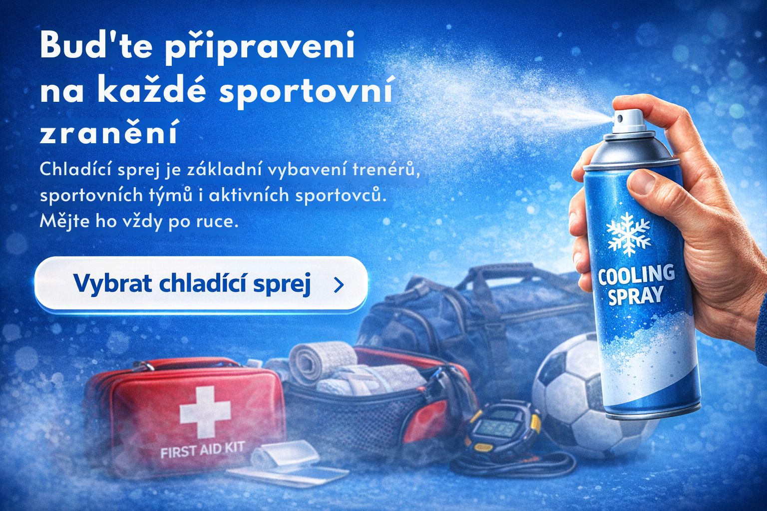 Chladící sprej patří mezi základní vybavení každé sportovní lékárničky. Používá se při drobných sportovních zraněních, jako jsou naraženiny, výrony, svalové přetížení nebo otoky.