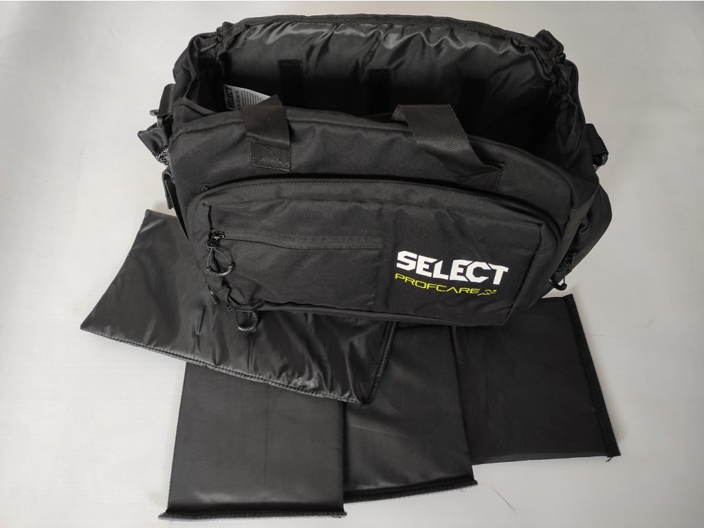 Nová lékářská taška SELECT s velkým úložným prostorem a mnoha kapsami, postranním držákem na láhev bez lahve a vybavení. Obsah 15l.