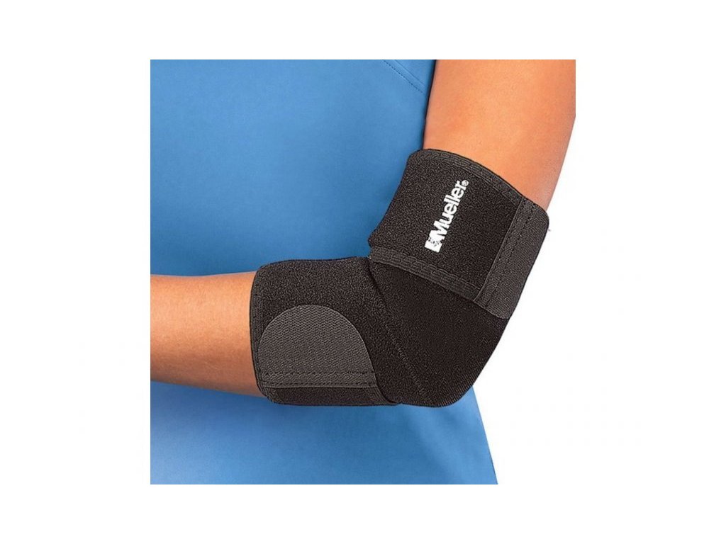 Mueller Elbow Support Neoprene Blend je ovinovací neoprenová bandáž opatřená dvěma pásy se suchým zipem pro nastavení potřebné podpory loktu. Neoprenový materiál poskytuje bolavým nebo poraněným loktům příjemné prohřátí a mírné stažení, což snižuje bolestivost kloubu. Bandáž má univerzální velikost pro obvod lokte 25 - 45 cm.
