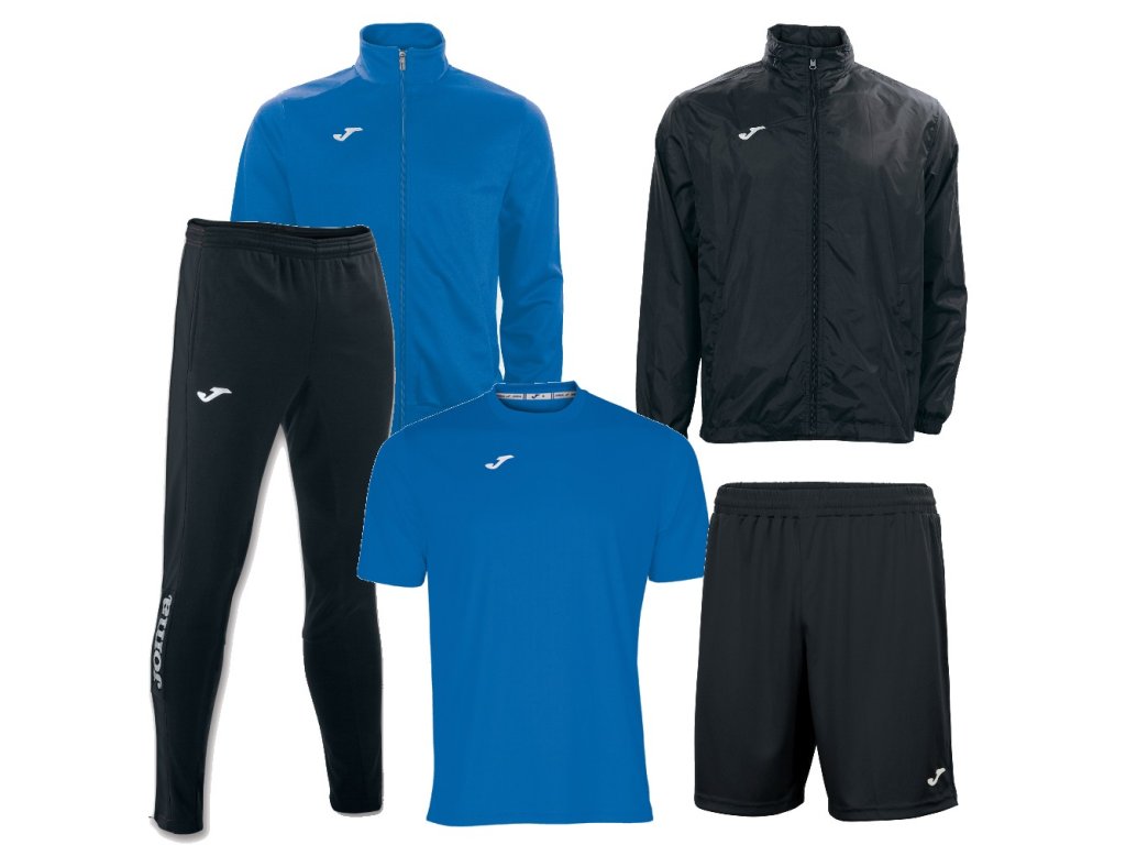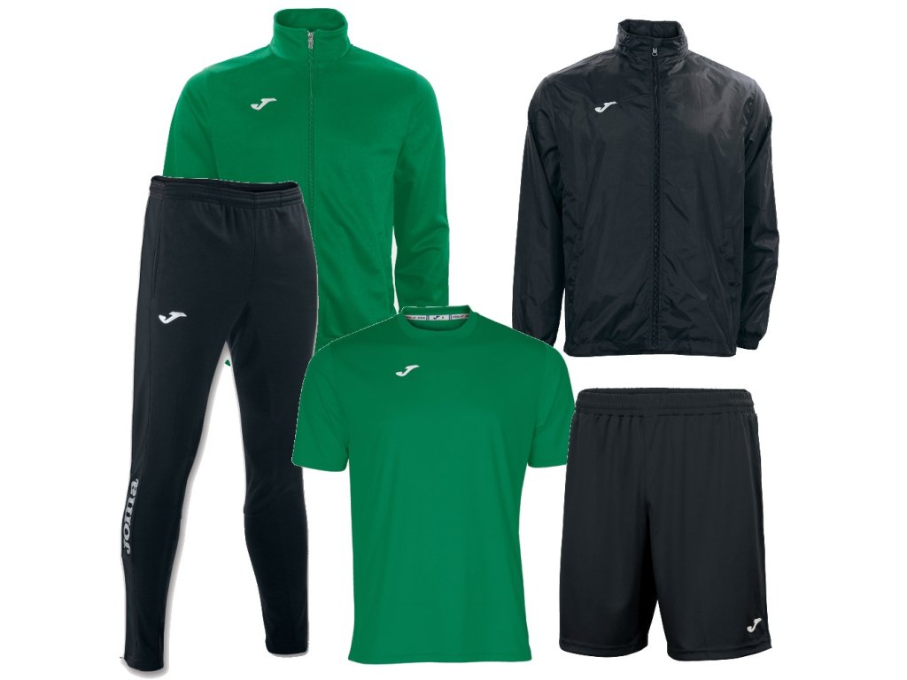 - Set JOMA Gala Combi je složený z teplákové bundy JOMA Gala, dresu JOMA Combi, tepláků JOMA Champion IV,, trenek JOMA Nobel a šusťákové bundy JOMA Iris