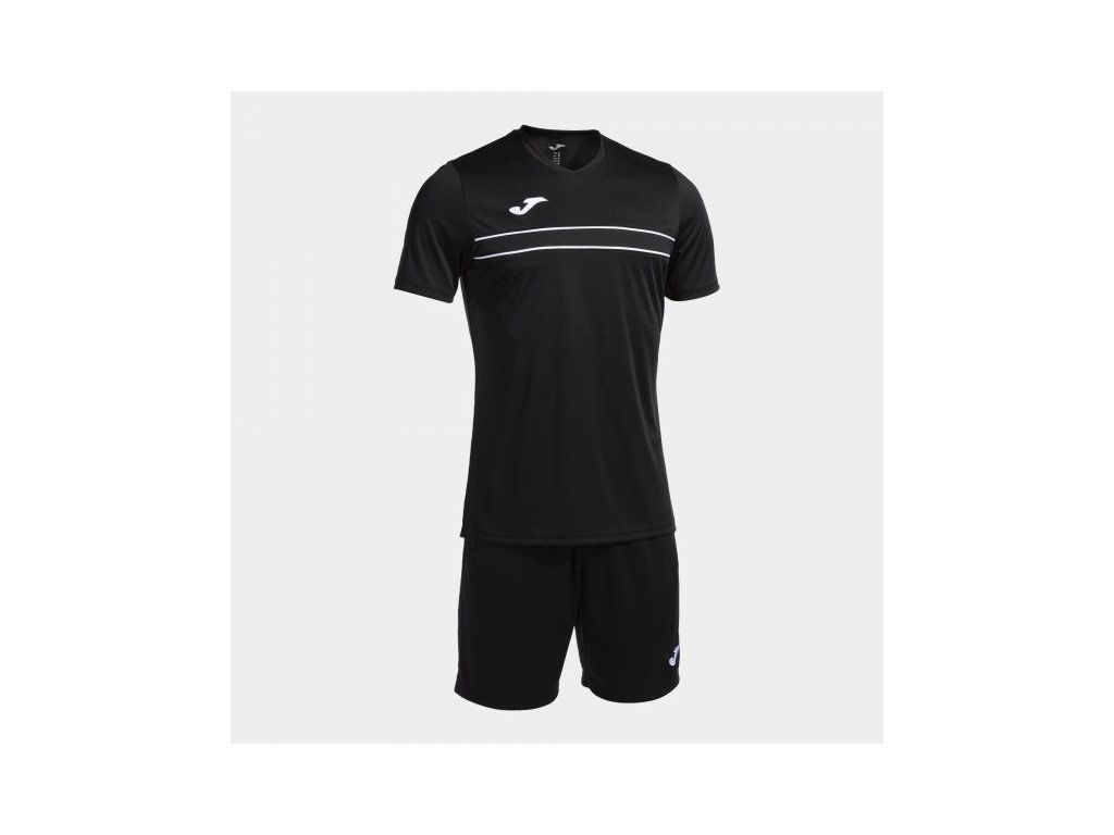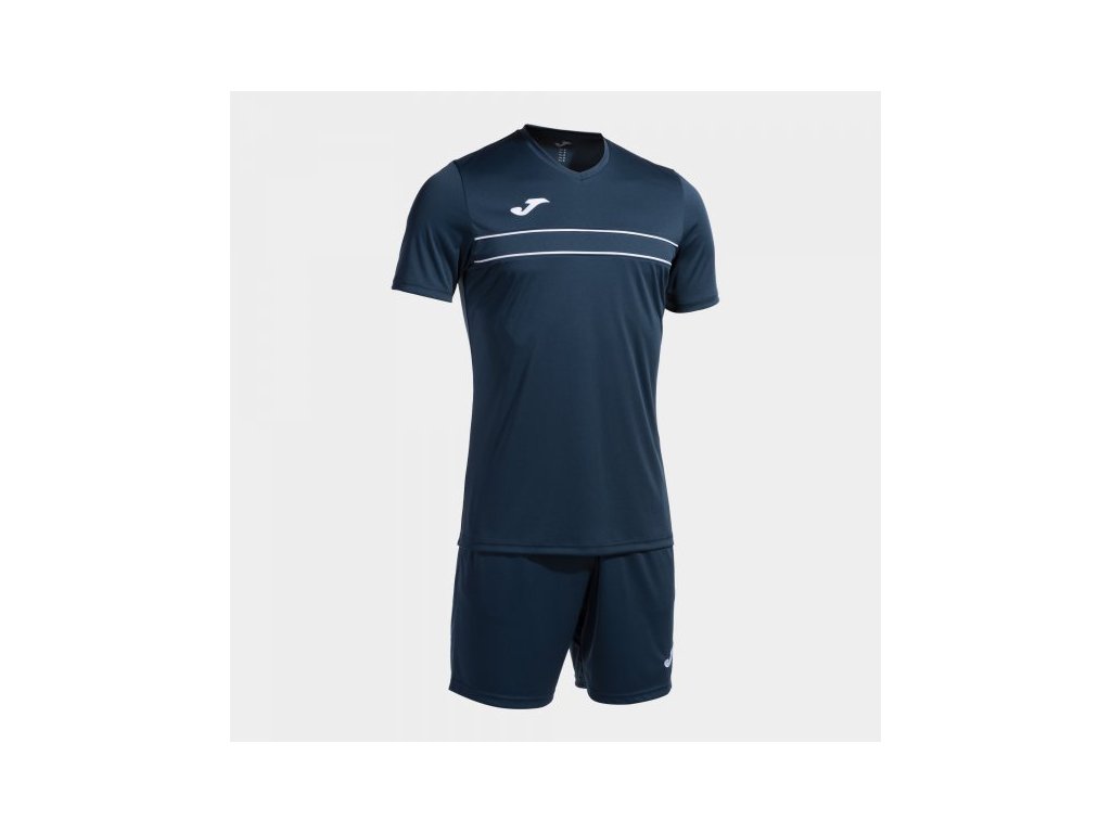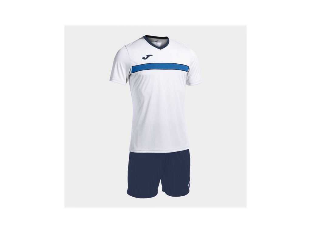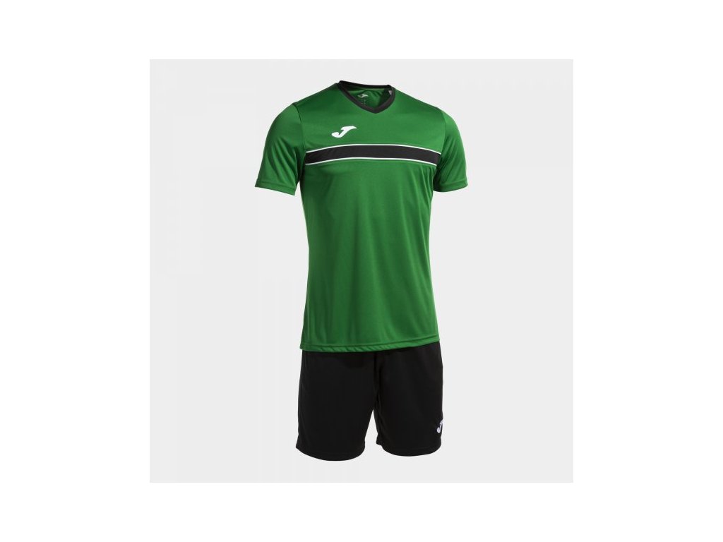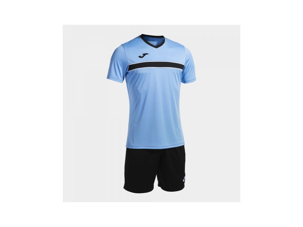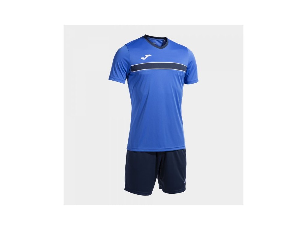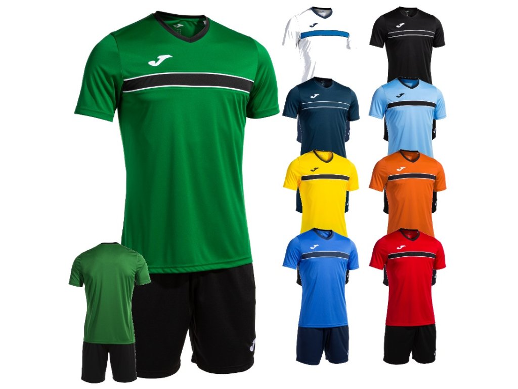 Sportovní set JOMA Victoria. Tréninkový a herní model pro fotbal, florbal a další sporty. Je lehký, pohodlný, prodyšný a poskytuje vynikající volnost pohybu. Jedná se o set skládající se z trička s krátkým rukávem a kraťasů. Košile má výstřih do V s vnitřní elastickou krycí páskou, která optimalizuje střih a zabraňuje možnému oděru. Design s kontrastními barevnými střihy. Na druhou stranu mají kraťasy nastavitelnou gumu v pase s vnitřní šňůrkou a kapsami.
