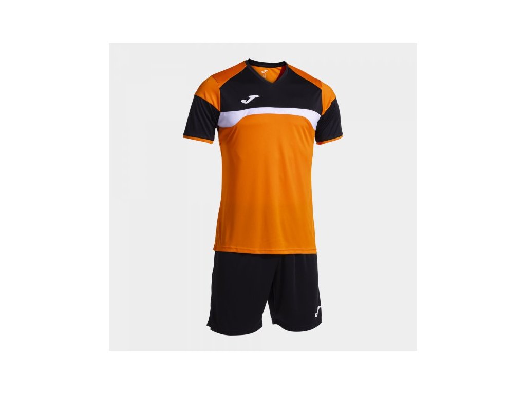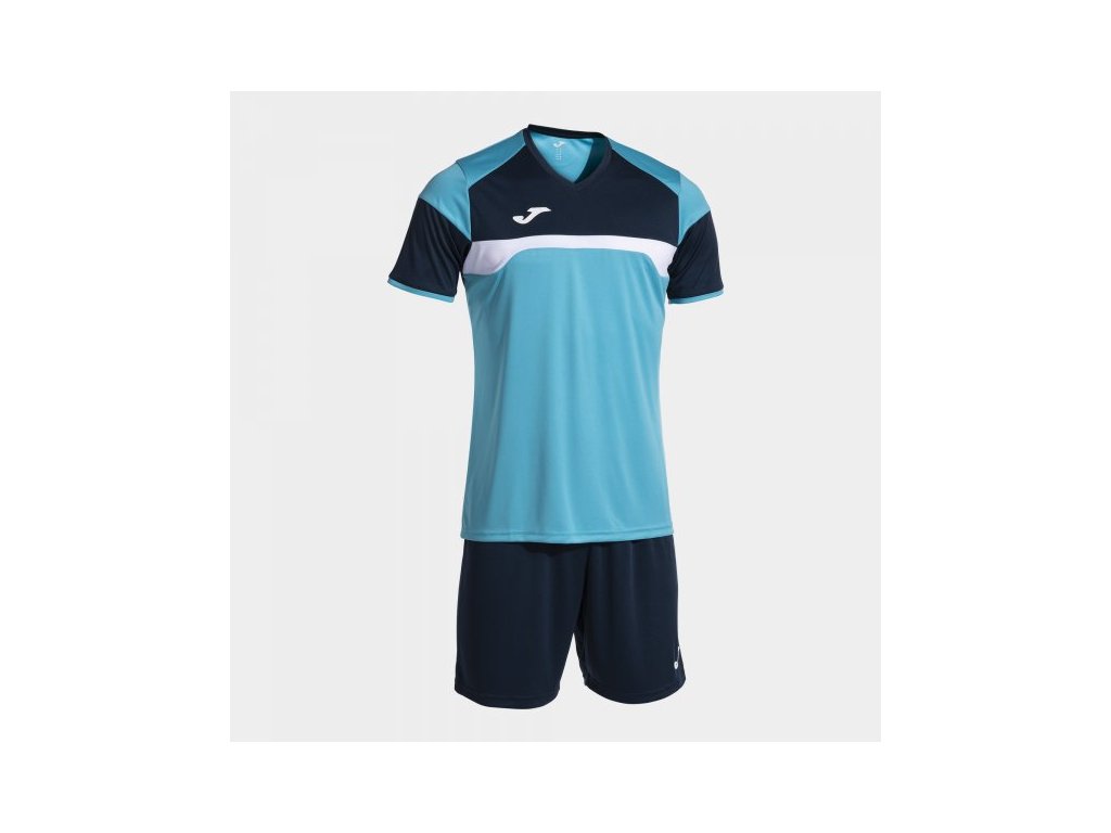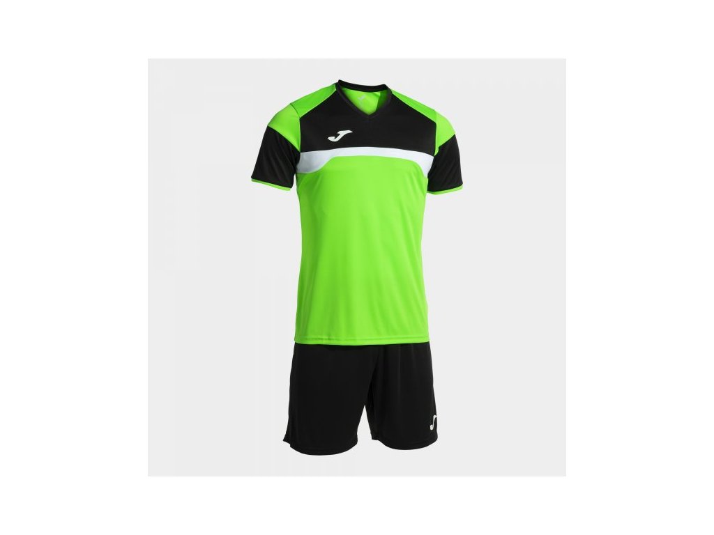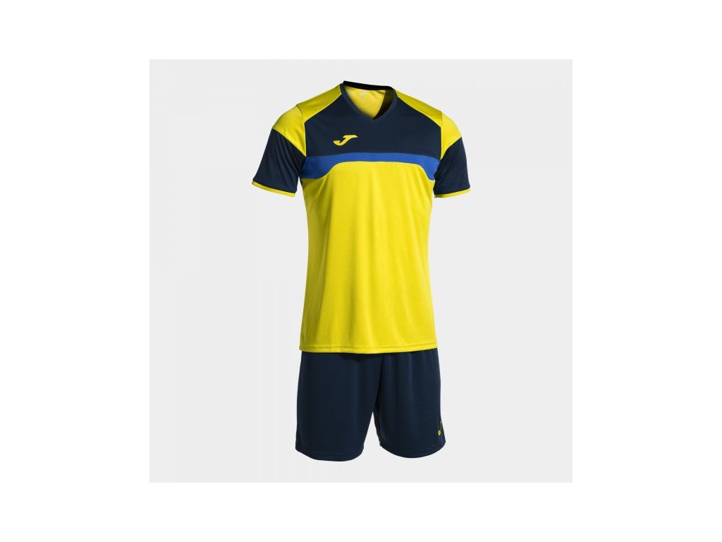 Sportovní set JOMA Danubio III. Sres a trenky . Tréninkový a herní model pro fotbal. Tento set se skládá z trička s krátkým rukávem a kraťasů. Je lehký, pohodlný, prodyšný a poskytuje vynikající volnost pohybu. Dres má výstřih do V s vnitřní elastickou krycí páskou, která optimalizuje střih a zabraňuje možnému oděru. Design s kontrastními barevnými střihy. Na druhou stranu mají kraťasy nastavitelnou gumu v pase s vnitřní šňůrkou.